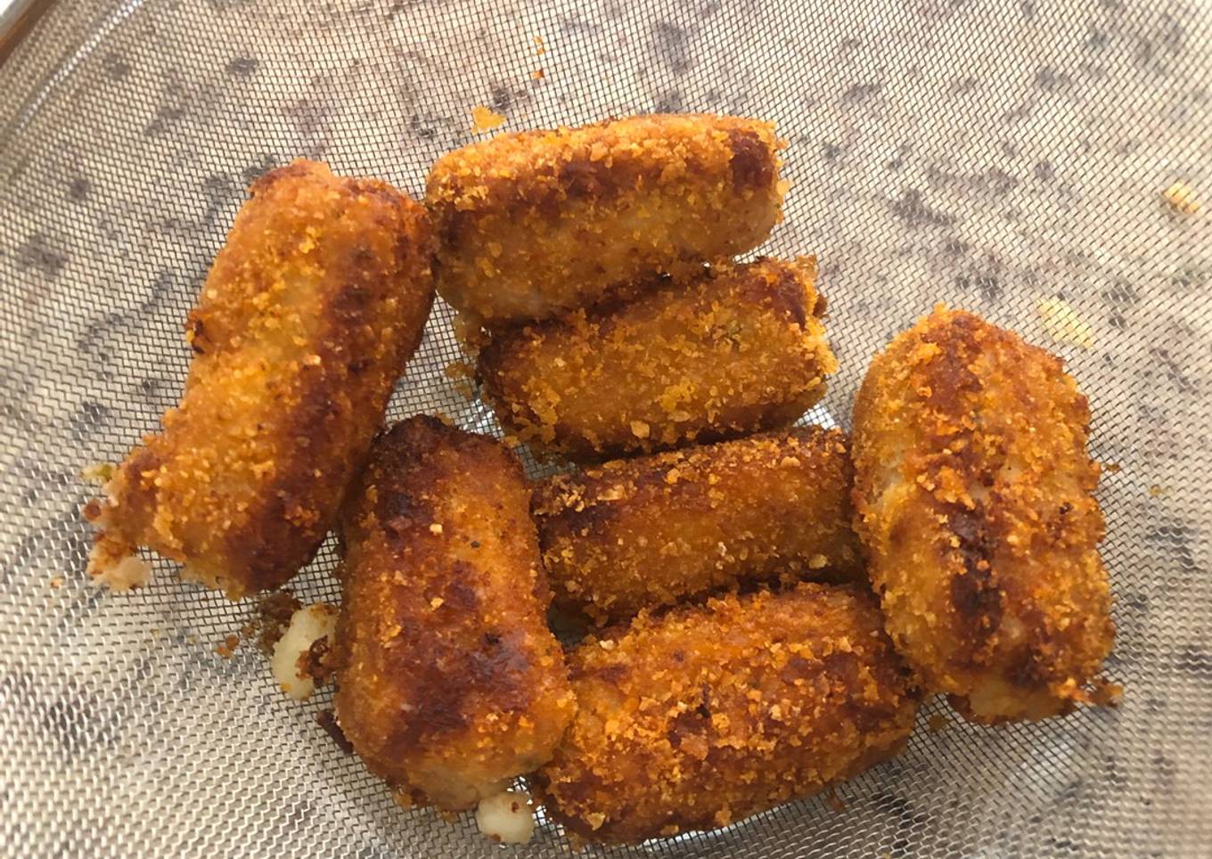 - Ve haciendo la forma de las croquetas al gusto y luego pásalas por pan molido