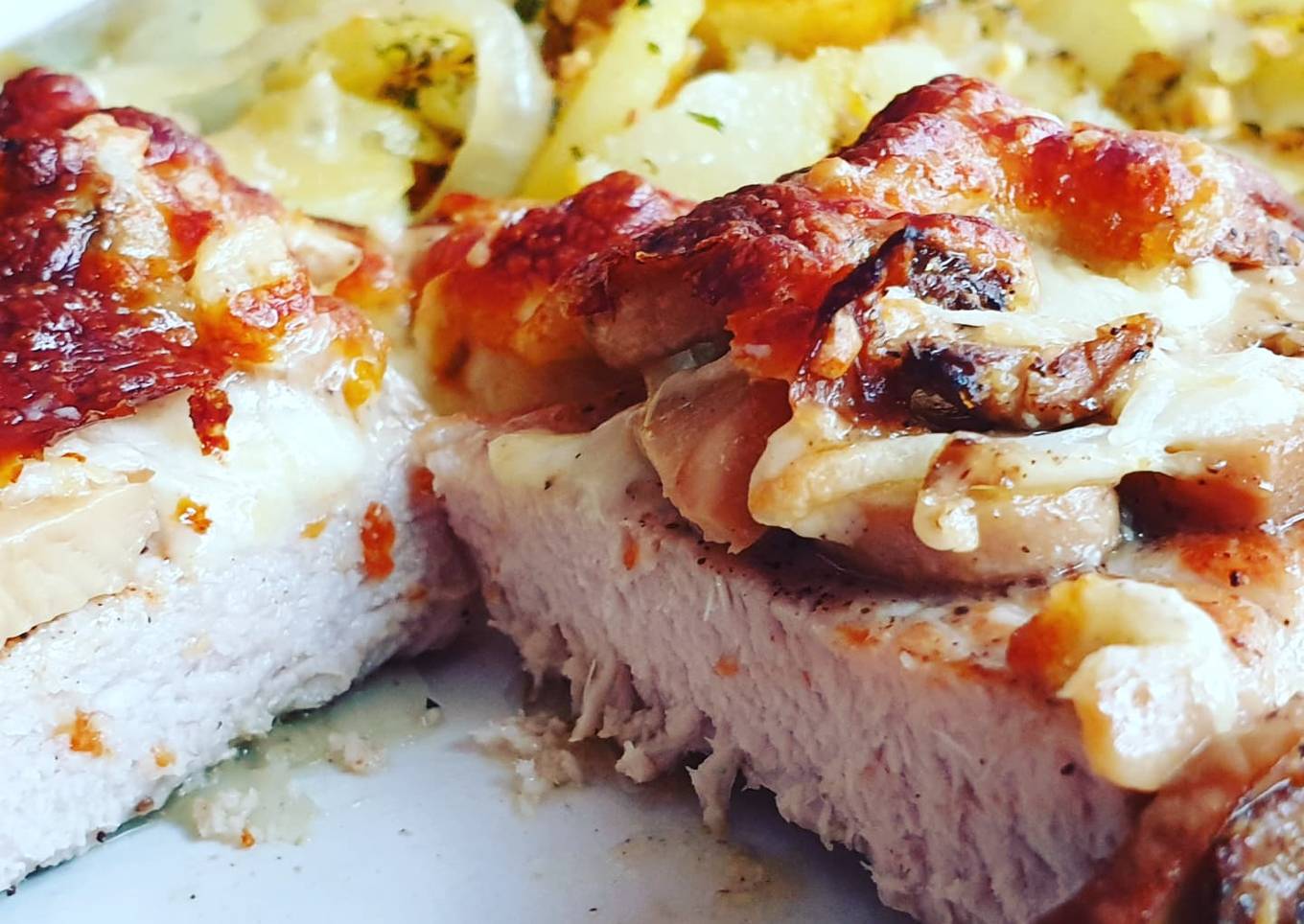 Lomo de cerdo con champiñones y cebolla (principiantes)