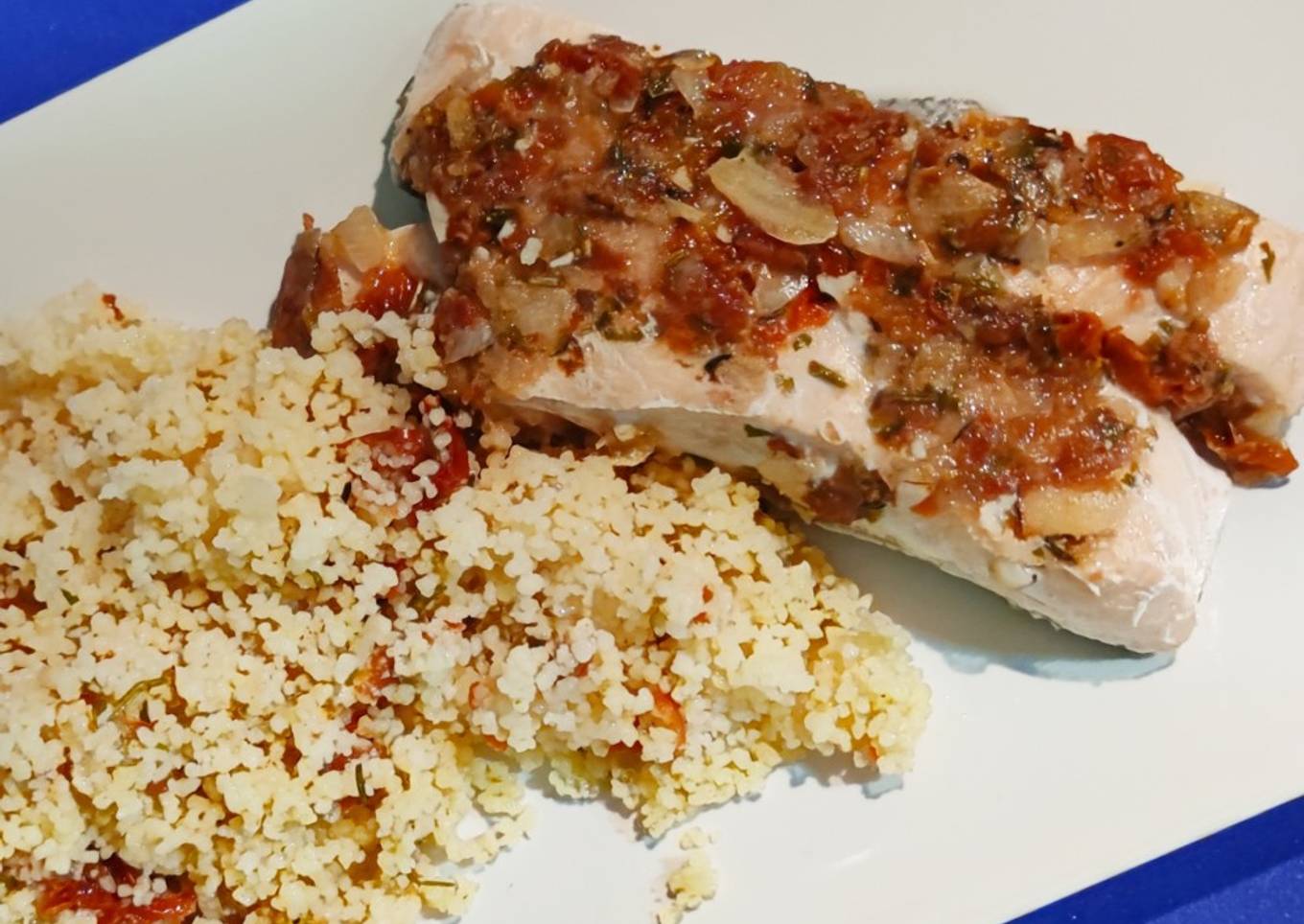 Hey everyone, I hope you are having an incredible day today. Today, I'm gonna show you how to make a distinctive dish, Salmón en papillote con tomates secos y cuscús. It is one of my favorites food recipes. For mine, I'm gonna make it a little bit tasty. This will be really delicious.